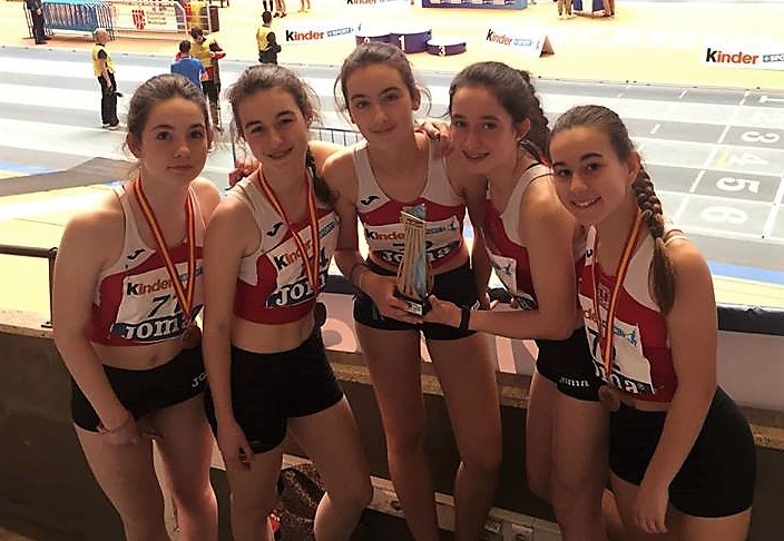 Sensacional TERCER PUESTO del equipo infantil femenino del 2004. Claudia Tajada, Jone Isusi, María Gil, Nerea Martínez y Oihane Gallo han conseguido la medalla de bronce por equipos en la categoría 2004/03 en la Fase final de Divirtiéndose con el Atletismo en el Estadio Luis Puig en Valencia. Zorionak Talde!!! A todas vosotras, a vuestro entrenador Ander Hurtado, a vuestras familias y a vuestr@s 27 compañer@s de todo el equipo infantil que estáis haciendo una temporada fenomenal.