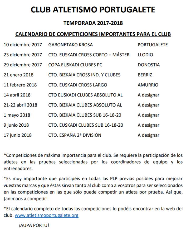 Este es el calendario de competiciones importantes para el club en esta temporada 2017-2018