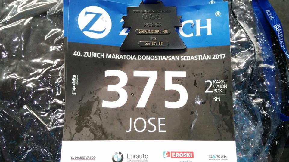 ¡ATENCIÓN SEÑORES Y SEÑORAS! Póngase tod@s en pie porque ayer nuestro atleta Jose González Iglesias Jesper González debutó en la Zurich Maratón de Donosti, su primera Maratón, con una marca de 2h 57 min 55 seg. Lo que significa correr la mítica distancia a 4:13 min/km de media. Para quitarse el sombrero. ¡ZORIONAK TXAPELDUN! ¡AUPA PORTU!